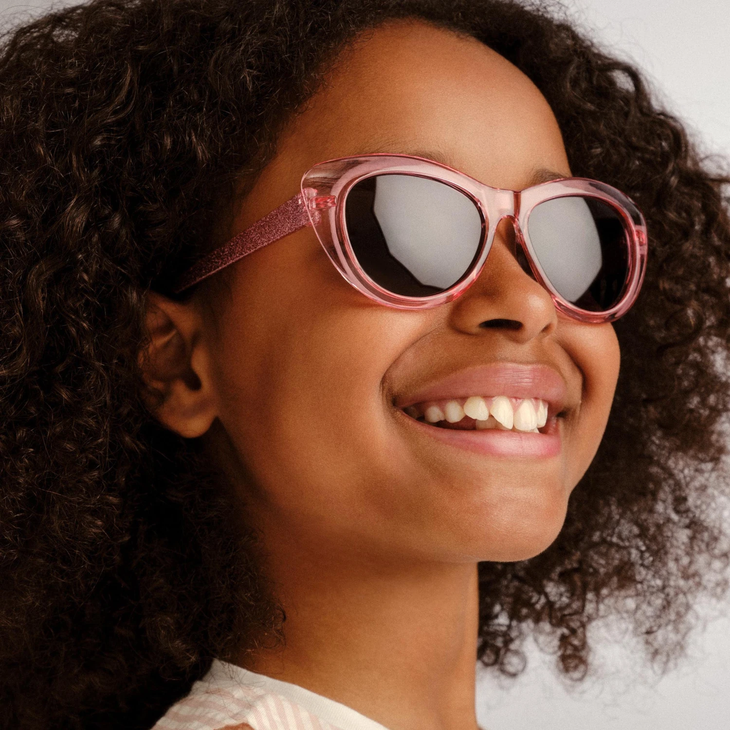 Let your child sparkle with the Elk Sunglasses! This classic cat-eye style is designed for kids aged 5 to 8 and is fitted with smoke polarized lenses for superior sun protection. Little fashionistas will love the stylish pink glitter frames.