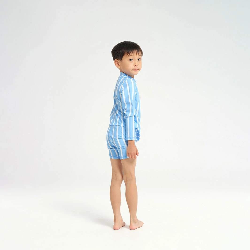 Maximize your sun protection and comfort with our Infant Blue Pinstripe Long Sleeve Rashie. Whether you’re headed to the beach or the pool, this rashie is the perfect choice with UPF50+ protection. For a complete outfit, pair it with our Swim Shorts or Nappy Cover.