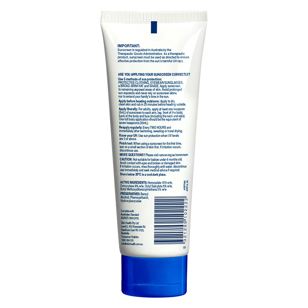 Active ingredients: Homosalate 10% w/w, Octocrylene 8% w/w, Octyl Salicylate 5% w/w, Butyl Methoxydibenzoylmethane 3% w/w